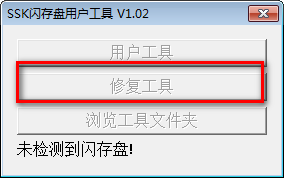 入U盘后会显示检测到闪存盘,然后我们点修复工具点击修复等待修复成功就好了