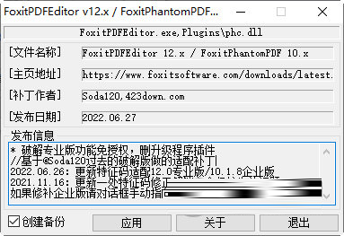 如果修补企业版请对话框手动指向FoxitPhantomPDF.exe