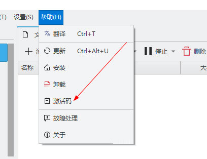 1、打开文件蜈蚣下载器,点击“帮助”-“激活码”
