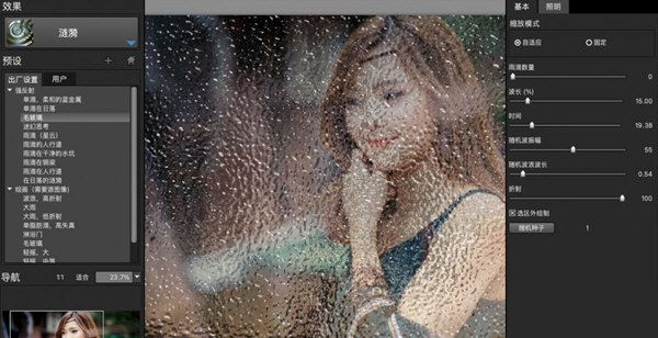 选择效果后,您可以使用导航器快速探索预设,这是一个即时更新的小预览。你甚至不必点击。只需将鼠标悬停在预设名称上,导航器就会显示效果在设计中的外观。在下面的屏幕截图中,您可以在左下角看到导航器。单击图像以查看更多详细信息。