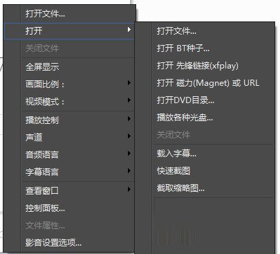 影音先锋支持网络URL的边下边播功能,首先运行后,在播放屏幕上右键,在菜单中选择【打开】,然后就可以选择任务类型,磁力或者URL。