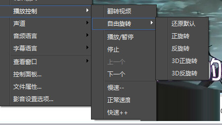 在播放视频的时候,在播放页面中右键,选择播放控制,你可以从自由翻转视频和自由旋转中设置视频的旋转方向。