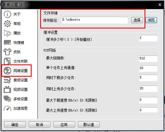 在【网络设置】选项中,文件存储里的保存路径中就能设置,但是在设置前请确保没有任务在下载,否则任务会下载失败。设置好后点击应用即可。