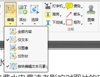 (1)对PDF文件中的文本、图像、形状等全部的内容进行编辑;