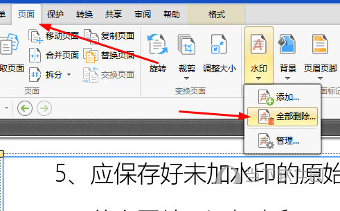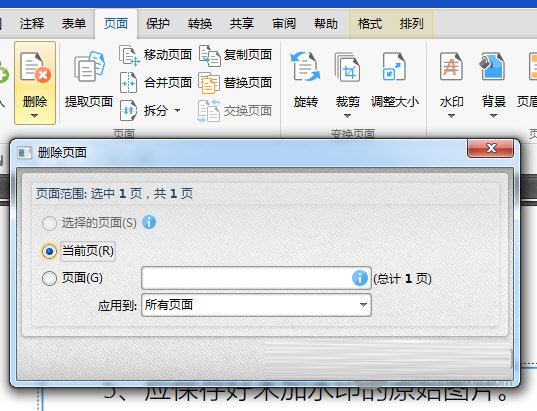 在菜单栏上选择【页面】→【水印】→【全部删除】,弹出的对话框选择是,就可以批量删除水印。
