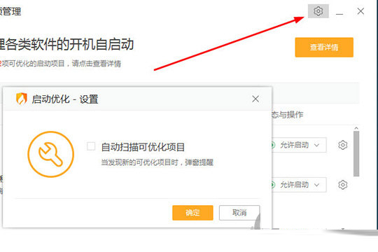 5、如果你觉得每次都需要打开火绒优化启动项太过麻烦,只需点击“菜单”选项,将自动扫描可优化项目进行勾选,当发现新的可优化项目时,软件将会以弹窗的形式进行提醒,如下图所示: