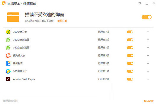 3、在弹窗拦截的界面中,将此功能进行勾选,用户可以在其中看到当前所拦截的程序,如下图所示: