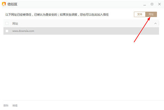 5、除了信任文件外,用户还可以在网址栏中添加信任网址,如下图所示: