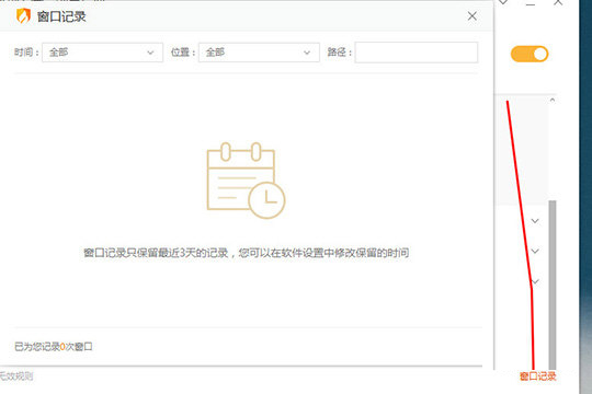 6、当你想要查看广告拦截的具体内容,只需点击右下角的“窗口记录”即可查看,此功能默认只保留最近3天的记录,如果你想要延长保留时间,只需要在软件设置中修改保留时间即可,如下图所示: