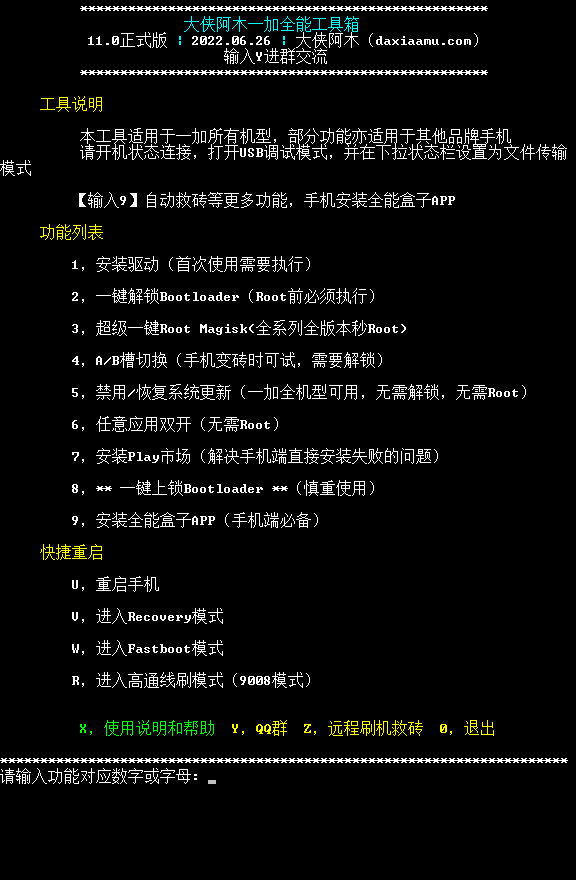 本工具的解锁bootloader功能适用于一加所有机型(运营商定制版除外)
