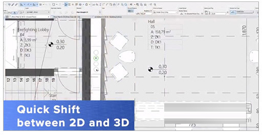 在2D环境下,每一张图纸都是建筑师一笔一笔用线条画出的:从平面图开始绘制,然后是画立面图、剖面图,再按照项目进展更改所有的图纸。然而,在“虚拟建筑”中,ArchiCAD虚拟建筑设计平台将彻底地改变这个工作过程,使建筑师能够抽身于各种繁杂的图纸绘制工作。