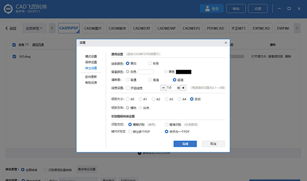 CAD转PDF,支持设置背景颜色、页面大小等设置,支持识别图框、批量转换