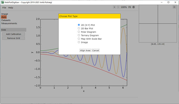 2、导入图片之后,在弹出的窗口中选择相应的图表类型,这里选择2D(x,y)Plot,之后点击Align Axes按钮。
