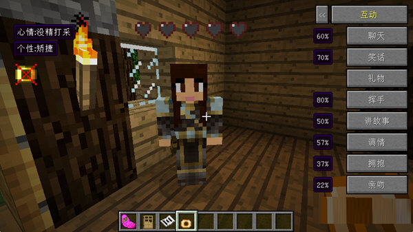 MC虚拟人生MOD给简单来说就是可以在游戏中与NPC结婚生子,游戏中增加了新的村民社交系统。然后和对方一起探索世界。游戏中每一位NPC都可以与之互动,让这个游戏变得生机勃勃,模组让新增许多交互体验,让单人游戏不再孤独一生啦!