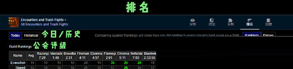 Encounters and Trash Fights ——所有BOSS遭遇战与小怪战斗排名页面