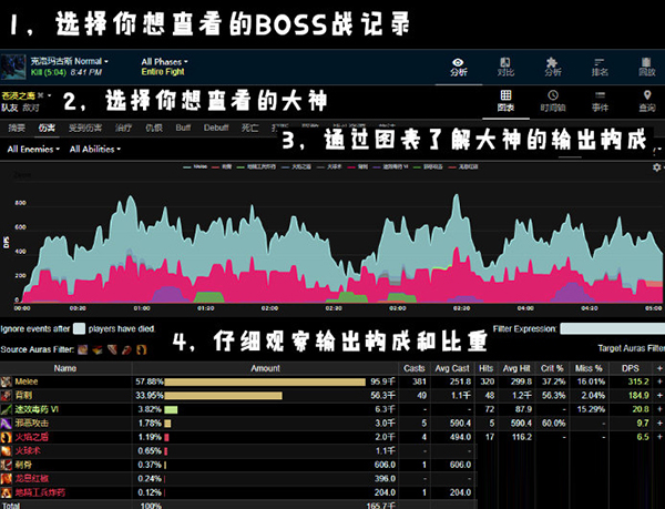 你可以通过搜索、排行榜等功能找到世界上最强的大神的战斗记录,也可以选择与你条件相当但输出胜出你很多的大神,了解他们是如何在战斗中做到胜人一筹的。