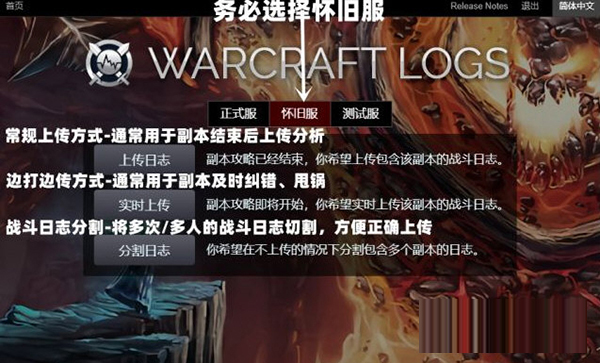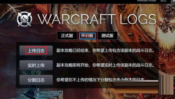 3、打完副本记录好数据后打开上传程序,选择怀旧服-上传日志