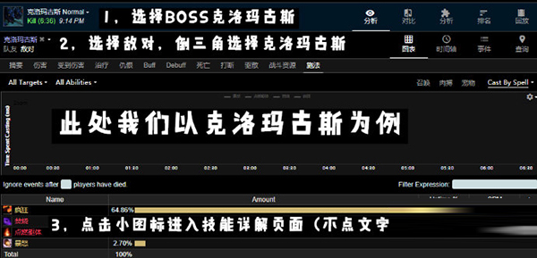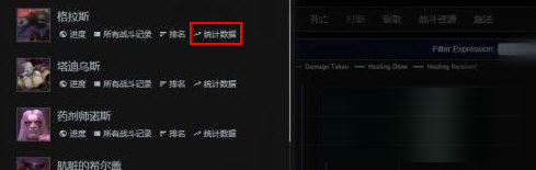 1、打开WCL中文版,选择想要查看的副本BOSS,点击“统计数据”