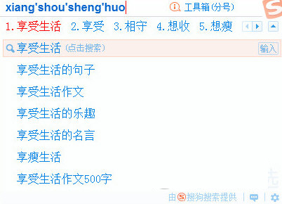 这一项同类产品中也有做到,如拼音加加。但搜狗拼音将许多符号表情也整合进词库,如输入“haha”得到“^_^”。另外还有提供一些用户自定义的缩写,如输入“QQ”,则显示“我的QQ号是XXXXXX”等。