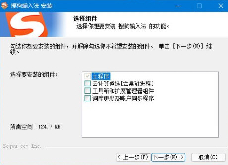 注:如果不启用防火墙勾选组件:词库更新及账户同步程序安装,后续会有升级提示!