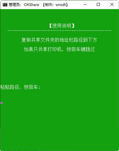 1、点击okshare.bat启动就可以了,如果提示错误,请通过管理员身份启动