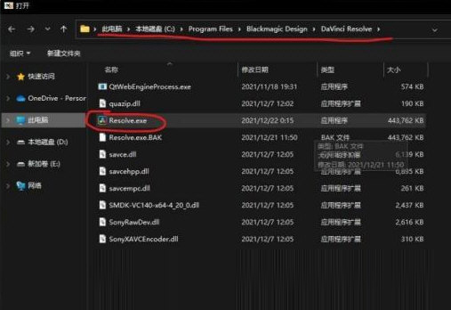 在安装目录下选择 Resolve.exe,然后点击打开