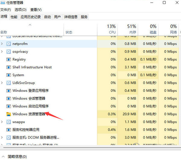 1、在搜索里搜索任务管理器,点击“任务管理器”左下角的“详细信息”切换到详细信息界面,默认显示的即是“进程”选项卡,向下滚动窗口到“Windows进程”区域,即可在其中找到“Windows资源管理器”进程。