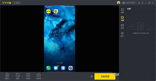 5、扫描成功后,点击“投屏到电脑”按钮,将手机的画面投屏到YY开播上,如下图所示: