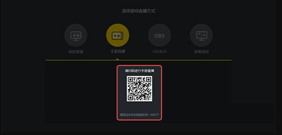 3、点击“手游直播”,可以看到下方显示的二维码,这就是接下来进行投屏的关键,如下图所示: