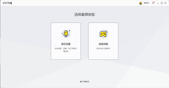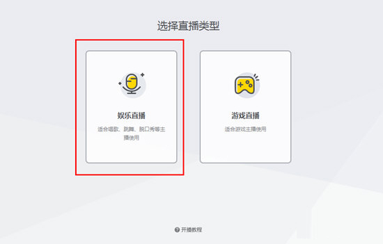 1、YY开播工具可以帮助广大主播用户更好的进行直播,小编近期了解到很多用户在使用过程中不知道怎么播放电视剧,那么小编我今天就来为大家讲讲具体的操作方法吧,首先需要先进入到YY开播的主界面,接着在直播类型中选择“娱乐直播”,如下图所示: