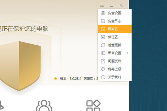 4、如果你想要打开隔离区,只需点击菜单栏中的“隔离区”功能即可打开,如下图所示: