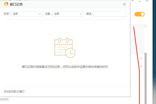 6、当你想要查看广告拦截的具体内容,只需点击右下角的“窗口记录”即可查看,此功能默认只保留最近3天的记录,如果你想要延长保留时间,只需要在软件设置中修改保留时间即可,如下图所示:
