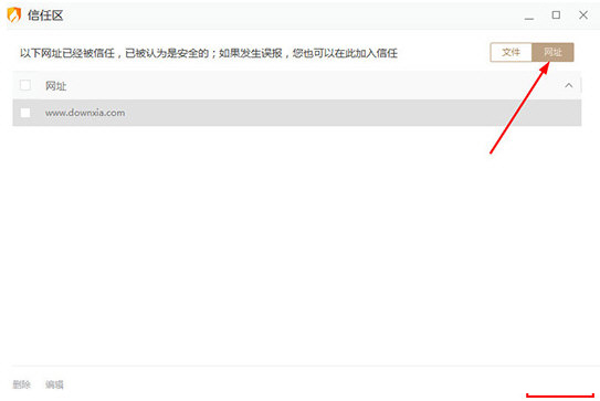 5、除了信任文件外,用户还可以在网址栏中添加信任网址,如下图所示: