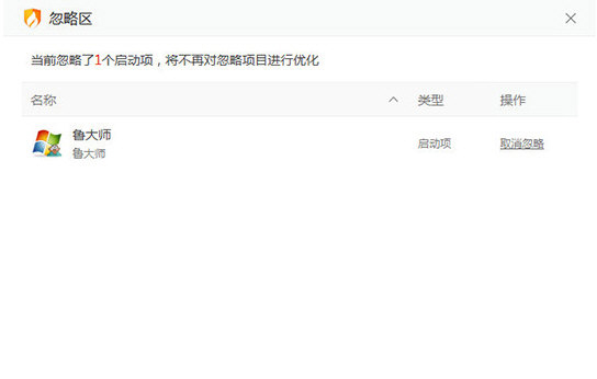 6、如果你想要忽略某些启动项,只需点击你想要忽略启动项后面的齿轮选项,将此启动项添加到忽略区即可,如下图所示:
