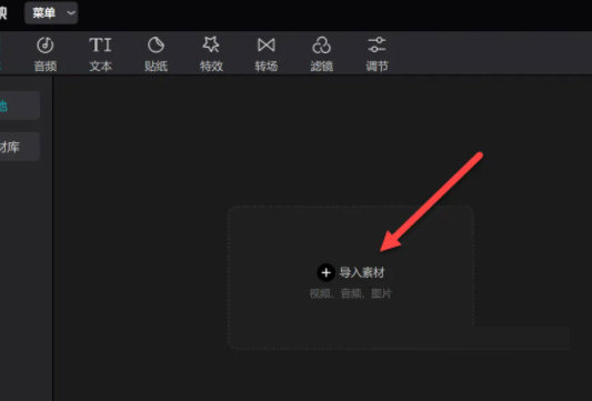 打开剪映,点击素材下方的加号,将素材添加至时间轴。