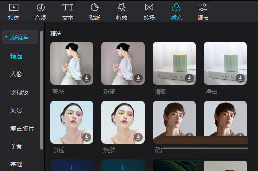 「滤镜」多种专业的风格滤镜,让视频不再单调。