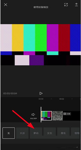 2、接着点击选中刚刚导入的视频素材,点击之后即可获得一个功能列表,在列表中即可找到“变声”功能。