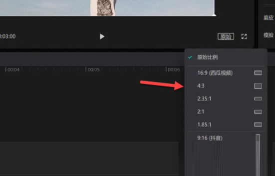 导入后拖入下方编辑轨道,选择轨道上的视频。