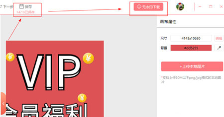 1、在图片编辑的页面上方点击“保存”功能按钮,在保存完成之后就可以点击右边的“无水印下载”了。