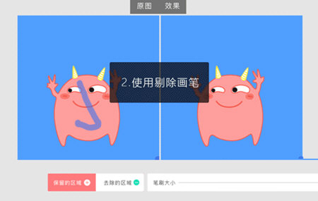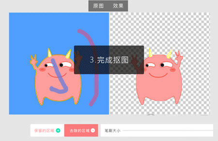 2、进入抠图工具之后需要导入本地的图片,首先需要选择保留画笔,将想要扣下来的图像部分选中,最好是连着的区域。