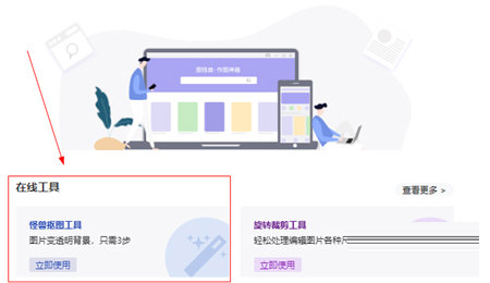 1、这个抠图工具其实是在官网上的,用户在官网首页往下拉就能在在线工具中看到“怪兽抠图工具”,点击进入即可。