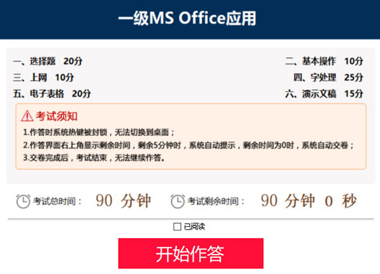 三个科目的考核内容都包括计算机基础知识和操作技能两部分。各科目对基础知识的要求相同,以考查应知应会为主,题型为选择题,分数占全卷的 20%。