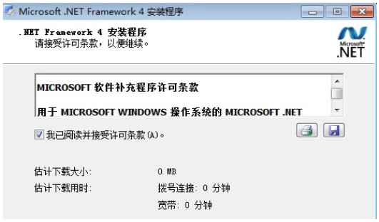 1、打开安装程序进入安装向导,单击勾选上左下方的“我已阅读并接受许可条款”,并在右下方有两个按钮,分别可以将条款打印或以文件形式保存下来。确认安装后,点击下方的“继续”按钮即可。