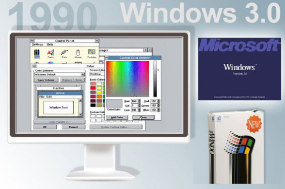 -微软的Windows系列操作平台的Windows 3.x家族发行于1990年到1994年间。其中的3.0版是第一个在世界上获得成功的版本。