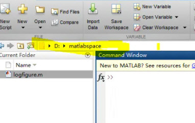 找到要工作的文件路径。我的是在D盘的matlabspace.图片上的黄色区域就是可以改变的MATLAB的工作路径