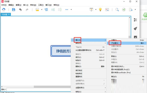 依次选择插入-子主题,如图所示