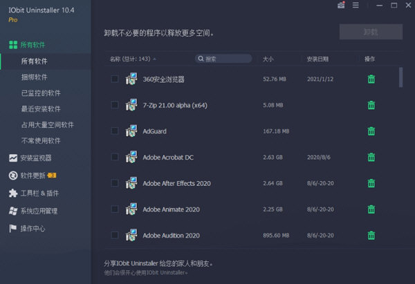 IObit Uninstaller PRO是一款非常专业的Windows系统程序卸载软件。目前它版本更新到了最新的12.0版本,当然拥有的功能也是最强的,并且界面也进行了优化,使用它之后,就能有效清理你电脑中的垃圾缓存,该版本经过破解处理,用户可永久免费使用,免注册码。