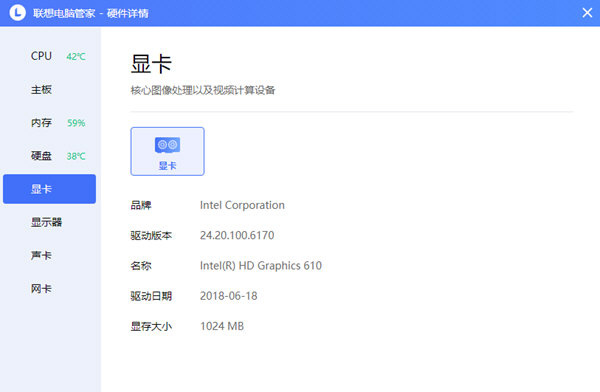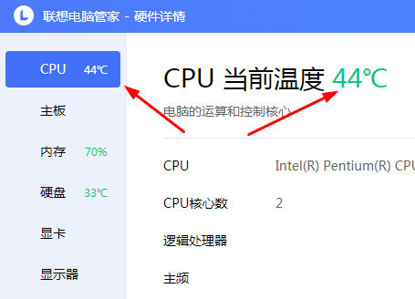 2、当然了如果你正好使用的是联想品牌的电脑,那么硬件界面会显示出更多的信息哦,而且还会有桌面插件显示当前硬件的温度。