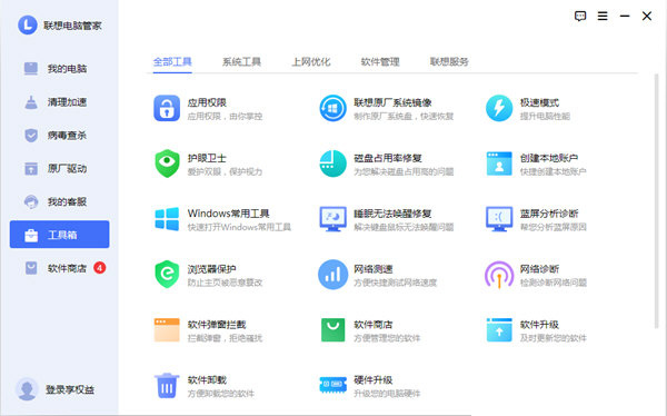 联想电脑管家是联想官方推出的一款电脑安全辅助和系统优化工具,拥有联想品牌电脑用户配合电脑管家,守护电脑的健康。它拥有联想官方驱动下载,系统硬件诊断,快速客服等服务,与您贴心相伴。除此之外,它还可以让电脑更加流畅安全,让用户可以放心的上网。