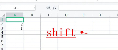 2、然后在键盘上按住shift快捷键。表格上下两行怎么互换位置